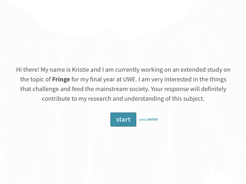 While researching on my topic, I decided to a survey to better understand people's initial or general perception of Fringe. I was also to find out what areas of Fringe that interest people and they would like to know more about. This exercise helped me visualise and understand my target audience.
